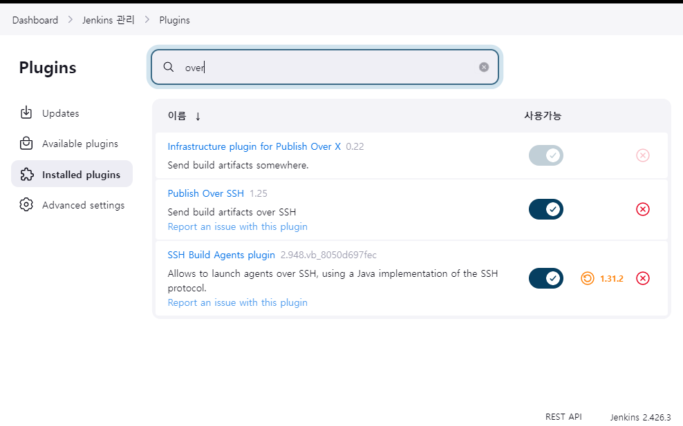 2. 추가로 publish Over SSH plugin 을 설치하자.