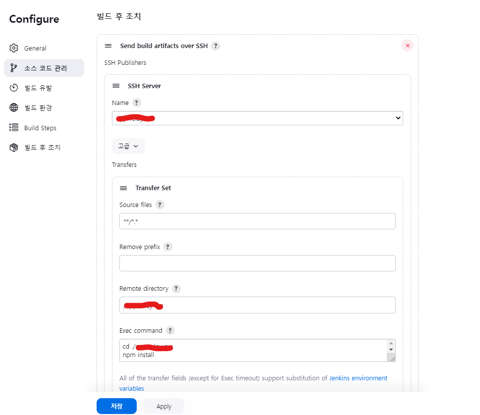 3. 빌드가 완료된 소스파일을 over SSH를 통해 운영서버에 배치.