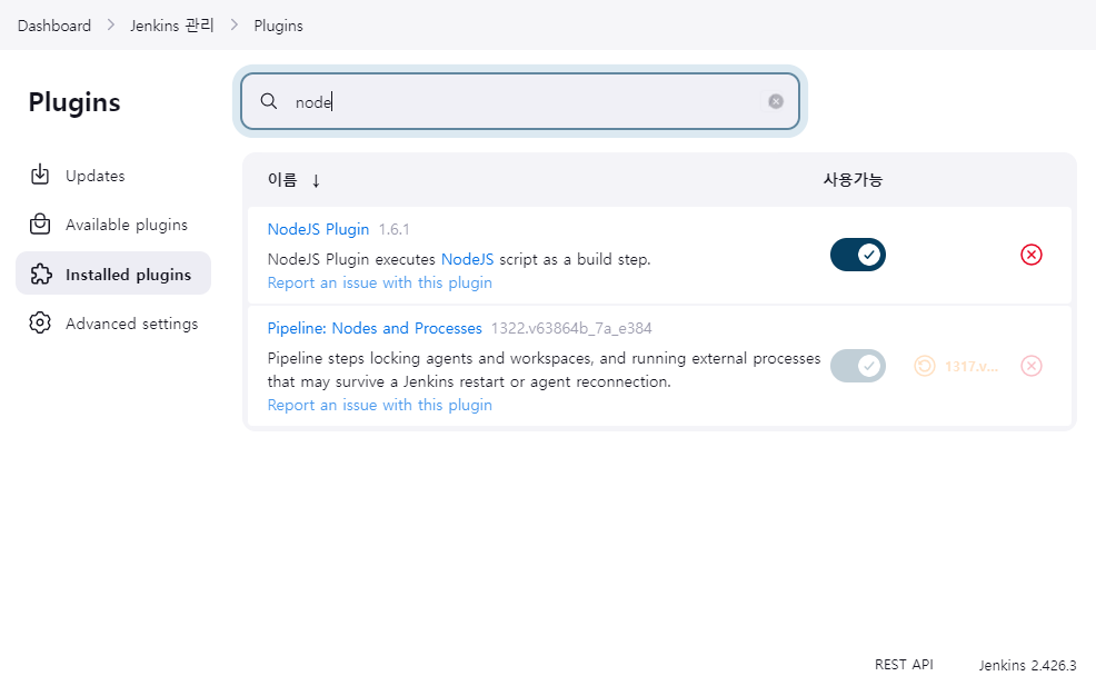 위에서 node.js플러그인 기본 설정을 했기 때문에 이 부분에서 노출이 되는 것이다.