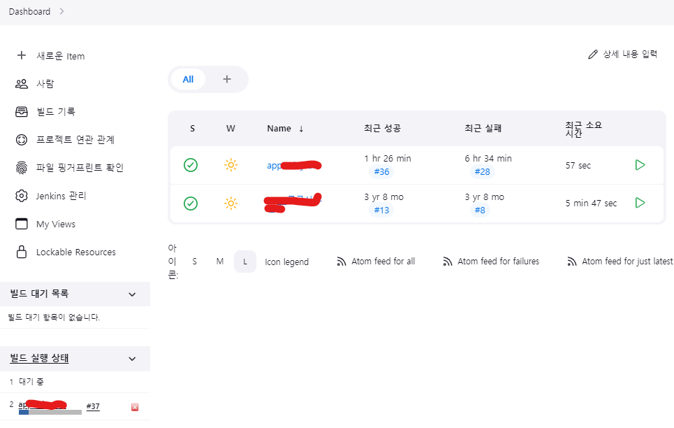 이제 저장을 하고 jenkins의 대시보드로 나온다.